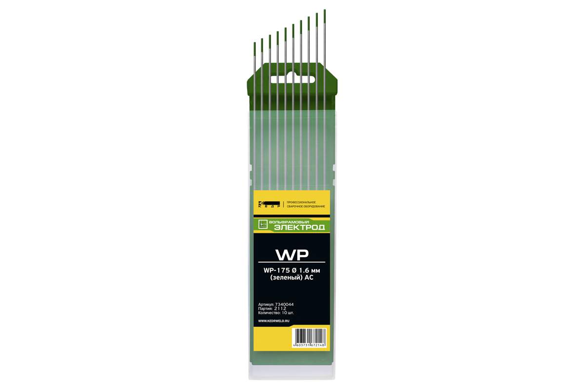 Электроды вольфрамовые WP, Ø 1,6 мм, цвет зеленый (цена указана за 1 электрод) чисто вольфрамовые электроды с содержанием вольфрама не менее 99,5%.
