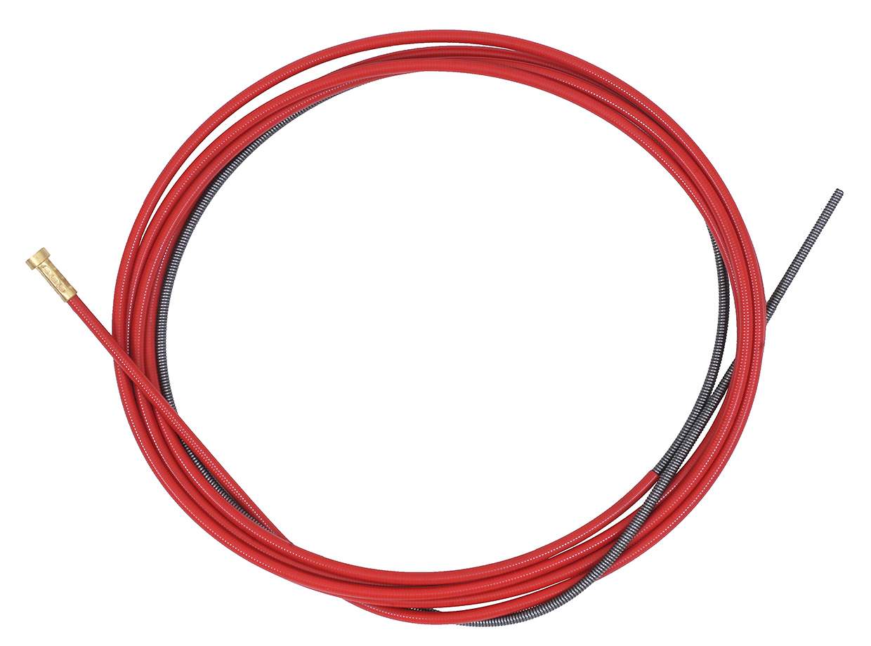 Канал направляющий (1,0–1,2) 5,5 м красный необходим в сварке типов MIG\MAG для подачи сварочной проволоки к соплу сварного пистолета. Подача происходит непосредственно от инвертора или от выносного элемента, подающего проволоку. Фиксация концов канала осуществляется в горелке и в инверторе.