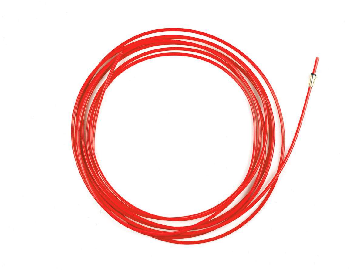 Канал направляющий тефлон (1,0–1,2) 5,5 м красный необходим в сварке типов MIG\MAG для подачи сварочной проволоки к соплу сварного пистолета. Подача происходит непосредственно от инвертора или от выносного элемента, подающего проволоку. Фиксация концов канала осуществляется в горелке и в инверторе.