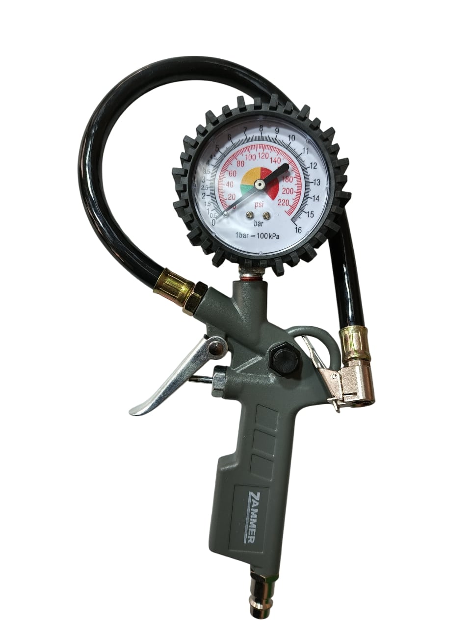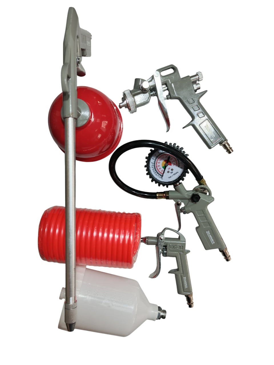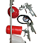 Комплектация | пистолет для подкачки шин до 16 бар, шланг спиральный (5 метров), пневмопистолет продувочный, краскопульт серии H.V.L.P. и моечный пневмопистолет |