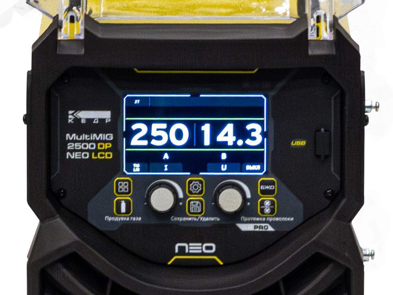 Полуавтомат КЕДР MultiMIG-2500DP NEO LCD использует новейшую технологию широтно-импульсной модуляции (ШИМ) и высокоэффективные силовые модули биполярных транзисторов с изолированным затвором (IGBT). Полуавтомат КЕДР MultiMIG-2500DP NEO LCD характеризуются высокой мобильностью, малыми размерами, небольшим весом, низким потреблением энергии, удобством использования и широким функционалом благодаря высокотехнологичному LCD дисплею. Полуавтомат КЕДР MultiMIG-2500DP NEO LCD оснащен активной системой коррекции выходной мощности в зависимости от изменений входящего тока и напряжения питающей сети PFC (Power Factor Correction). Данная система служит для снижения потребляемой реактивной мощности и позволяет стабильно работать сварочному аппарату при больших перепадах сетевого напряжения, при питании от генератора и при работе от удлинителей. Полуавтомат КЕДР MultiMIG-2500DP NEO LCD является высокотехнологичным многофункциональным промышленным источником питания для MIG/MAG, MMA и TIG сварки. Механизированный процесс MIG/MIG сварки обеспечен широким списком синергетических программ, разработанных для различного типа проволоки, защитного газа и свариваемого металла, а также импульсные режимы сварки с использованием одинарного импульса или технологии двойного импульса. Применение высокоскоростного цифрового управления сварочным процессом позволяет обеспечить высококачественные сварные швы с отличным геометрическим формированием и внешним видом, Полуавтомат КЕДР MultiMIG-2500DP NEO LCD минимизировать разбрызгивание электродного металла и тепловложение в свариваемую конструкцию. Простое и интуитивно понятное управление сварочными параметрами с LCD панели управления позволяет легко настраивать и контролировать режимы сварки. Наличие синергетического программного управления минимизирует время оптимального подбора параметров сварки в зависимости от задачи. Режим TIG сварки с поджигом дуги касанием и подъемом вольфрамового электрода (LiftTIG) имеет превосходный старт сварочной дуги, стабильность и мягкость горения дуги для выполнения высококачественных сварных швов. Режим ММА сварки обеспечивает высокий контроль процесса сварки при использовании штучных электродов с различным типом покрытия, а дополнительные функции Горячего старта и Форсажа дуги повышают удобство работы и качество сварных соединений. Полуавтомат КЕДР MultiMIG-2500DP NEO LCD имеет встроенные функции автоматической защиты от перенапряжения, перегрузки по току и перегрева. Если возникает какая-либо из вышеперечисленных проблем, то система самодиагностики источника выдаст соответствующую ошибку на LCD панели и выходной ток отключится автоматически. Перечисленные меры обеспечивают высокую степень защиты аппарата, продлевают срок его службы, а также повышают удобство диагностики и обслуживания оборудования..