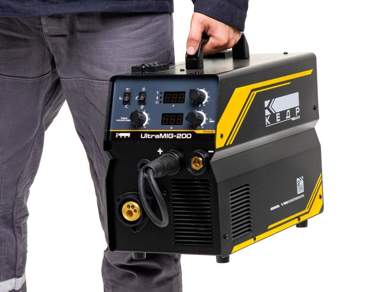 Полуавтомат КЕДР UltraMIG-200 (220В, 30-200А) - предназначен для сварки на малых и средних предприятиях, частных мастерских, а также для использования в домашних хозяйствах. Аппарат выполнен на современных IGBT-модулях, надежно защищенных силовой частью, а высокопрочный металлический корпус позволяет использовать его в тяжелых промышленных условиях. Цифровая панель с дисплеями значительно упрощает работу с данным аппаратом и позволяет снизить классификацию сварщика без потери качества сварки.