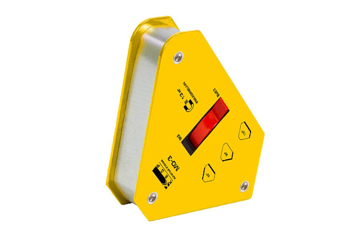 Магнитный угольник МО-3 позволяет производить точное выставление углов в процессе проведения сварочных работ, монтажа стальных конструкций, используется как элемент удержания деталей. Данное приспособление дает возможность осуществлять процесс сварки одному рабочему. Может быть использован для крепления элементов в процессе резки для предотвращения падения частей конструкций.