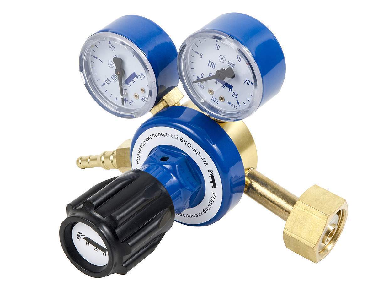 Редуктор кислородный КЕДР БКО-50-4М предназначен для понижения давления газа, поступающего из баллона, и автоматического поддержания заданного рабочего давления постоянным при газопламенной обработке.